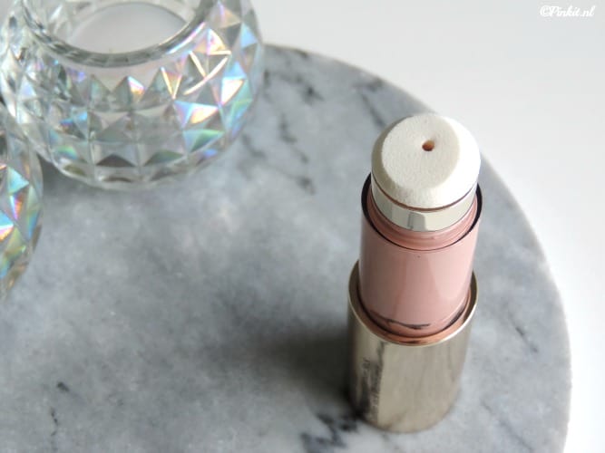 Aan de onderkant moet je draaien dan komt de vloeibare highlighter op het sponsje, hou er wel rekening mee dat als je net iets te enthousiast aan het draaien bent, dat er te veel product uit komt. Je hebt namelijk maar een klein dotje nodig, en als je te veel product hebt dan is dat natuurlijk zonde. Dus niet gelijk té enthousiast aan de slag gaan…